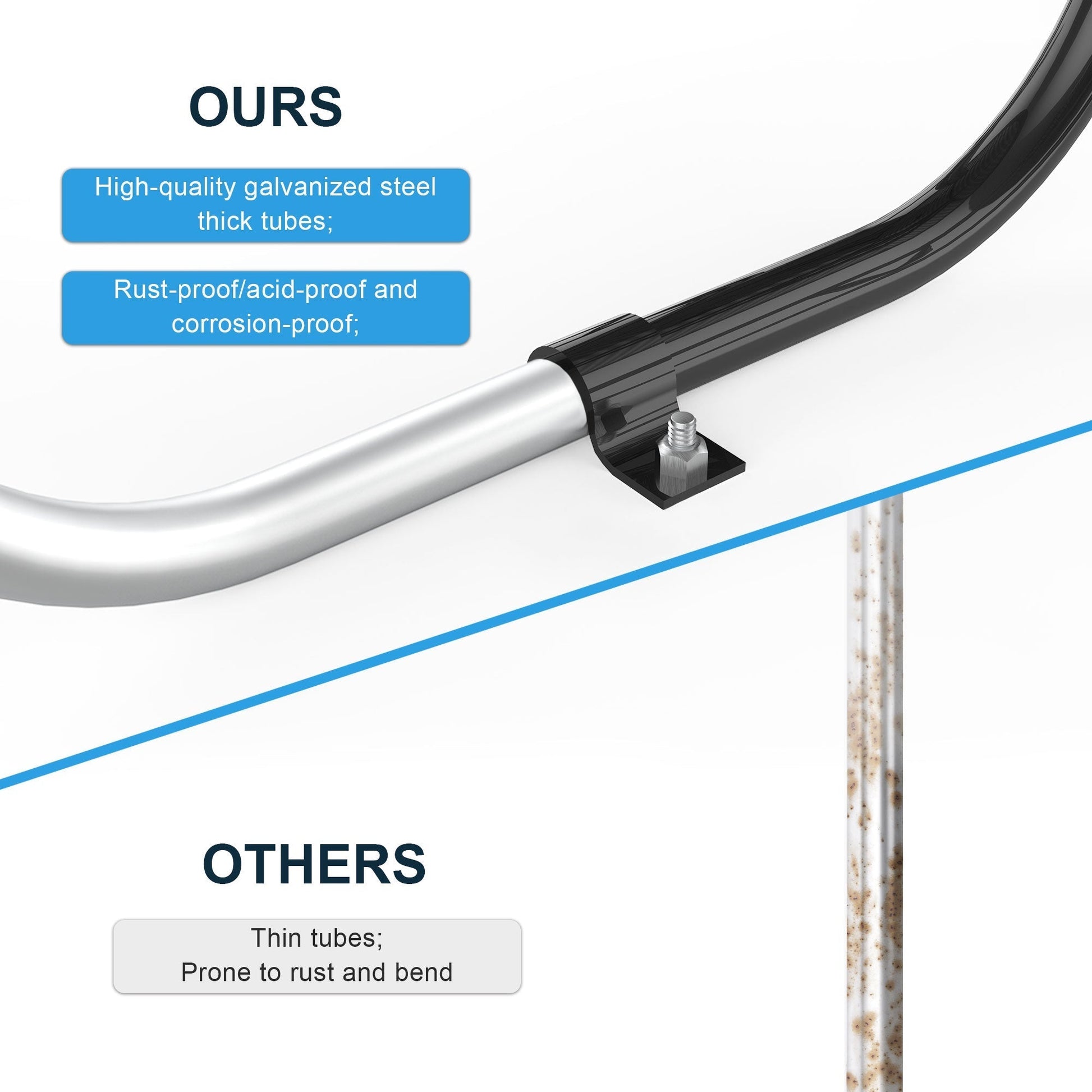 Anti-rust Coating: Its galvanized steel frame is shielded treated with a zinc-rich black powder coat finish that provides rust-prevention and resilience against the elements. The additional zinc-rich layer also offers an extra superior coating to withstand corrosion in any environment.