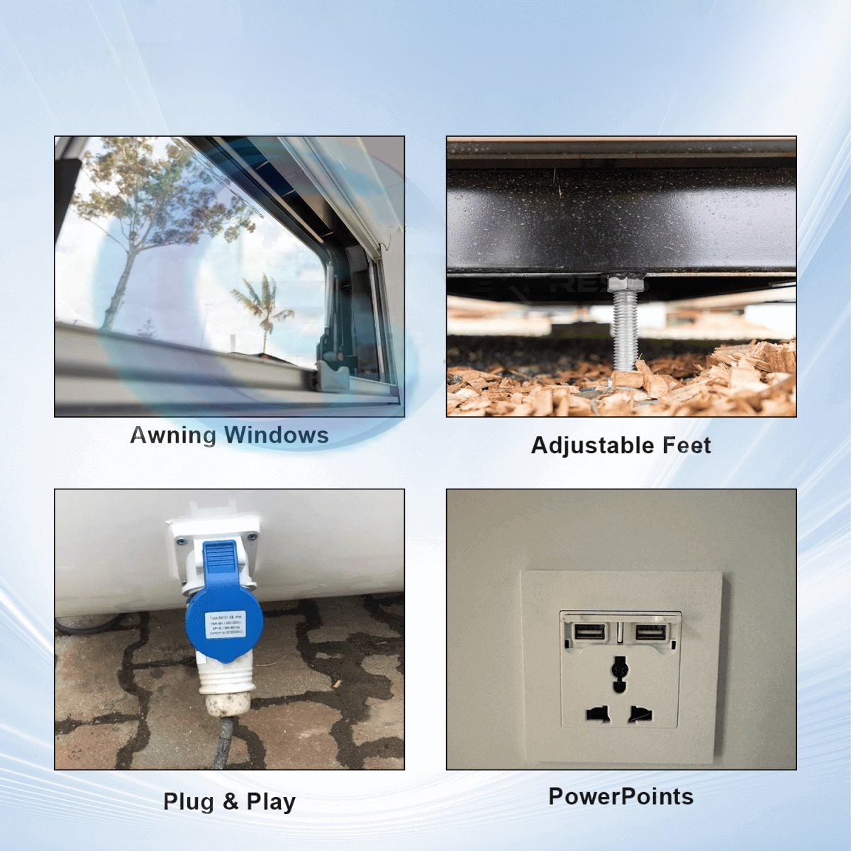 - Complete Convenience: From a fully equipped washroom with a shower to a side push-out window for ventilation and a bedside cupboard for sleeping, the cabin is thoughtfully designed with your convenience in mind.